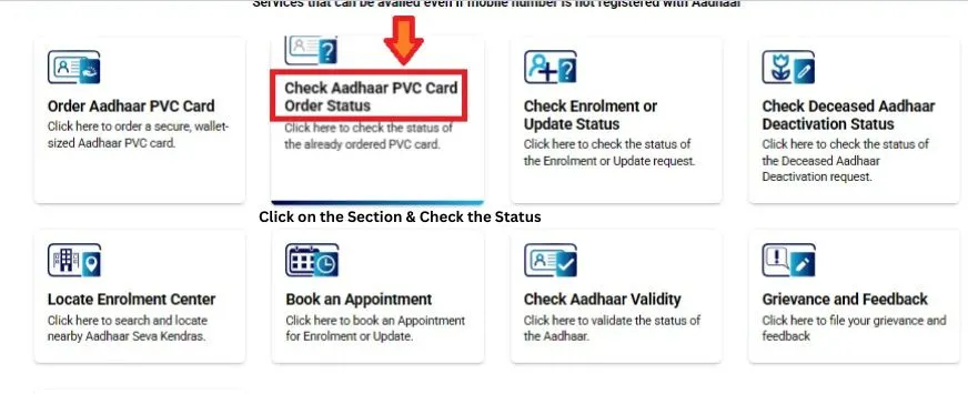- Go to the My Aadhaar tab and click on Check Aadhaar PVC Card Status.